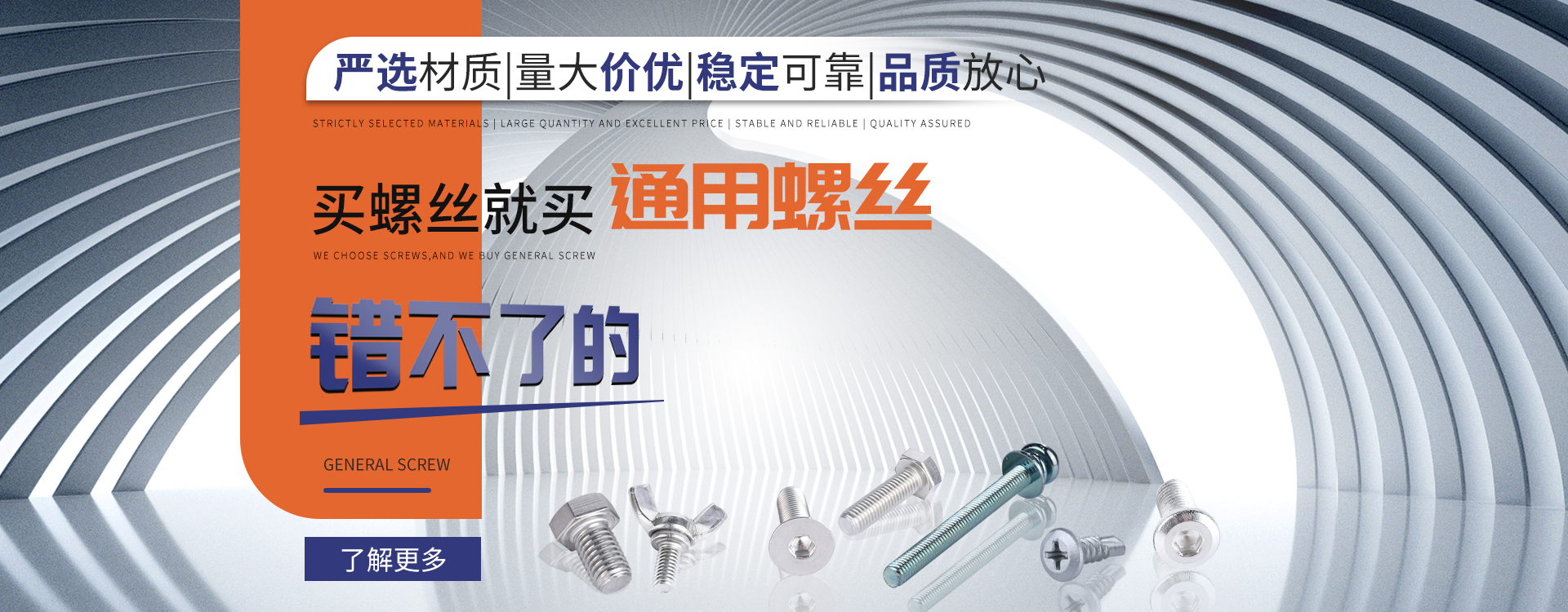 中山市通用螺絲制造有限公司成立于1987年,工廠坐落于廣東四小虎之一的中山市,北連廣州,毗鄰港澳。總占地面積14000m 2,足有兩個足球場1998年通過德國萊茵TUV ISO9002認證,于2002年通過TUV ISO9001:2000認證。2008年通過ISO 14000認證。我司主營自攻螺絲、組合螺絲、機械螺絲、防松螺絲等標準和非標準件既可按客戶的要求提交所需的產品,也可為客戶量身定做所需產品。我司擁有專業的產品檢測隊伍和投影分析儀、金相、硬度計(韋氏和洛氏)、扭矩力測試計等完善的檢測設備,為電子、電器、五金塑料、衛浴、家具、機械、汽配等行業提供符合歐盟質量、環保要求的產品2006年,我司自主開發的ERP管理系統,使我們的生產和服務效率得到了極大的提高 經過三十多年地摸爬滾打,依靠眾多新老顧客的支持,通用螺絲逐漸成長為國內知名的緊固件供應商。了解更多 >>